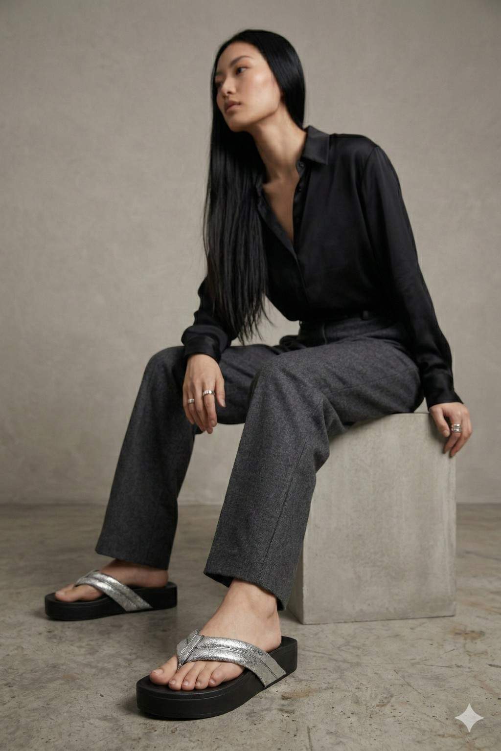 Introducing Argentéa BS, a refined expression of modern luxury and effortless strength. Designed with sleek leather straps, this silhouette captures light with every step, creating a luminous contrast against the deep black elevated sole.