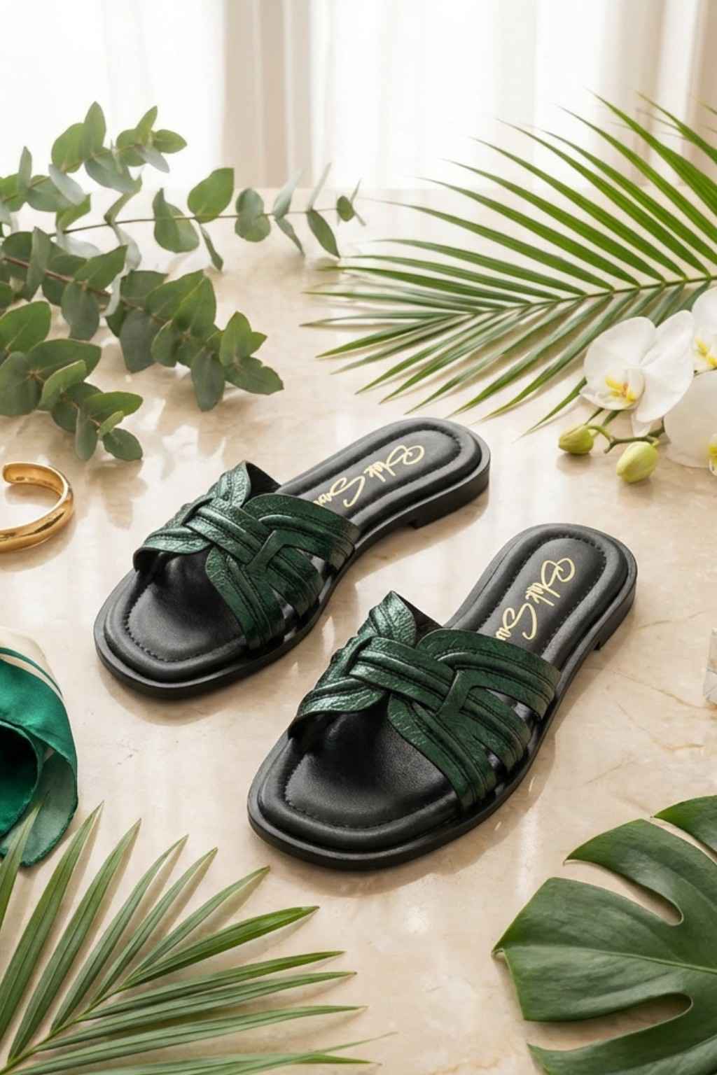 Crafted in the spirit of Italian artistry, Auréa Noir is a celebration of texture, contrast, and refined femininity. The luminous metallic gold leather is meticulously intrecciato by hand, creating a sculptural play of light against the deep noir base.