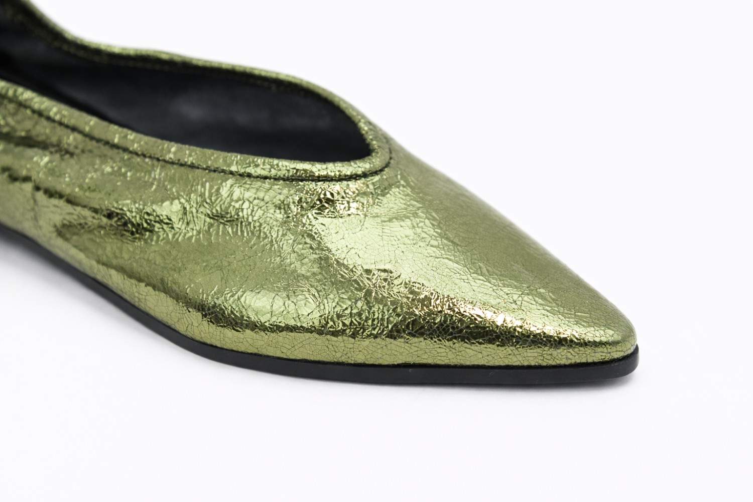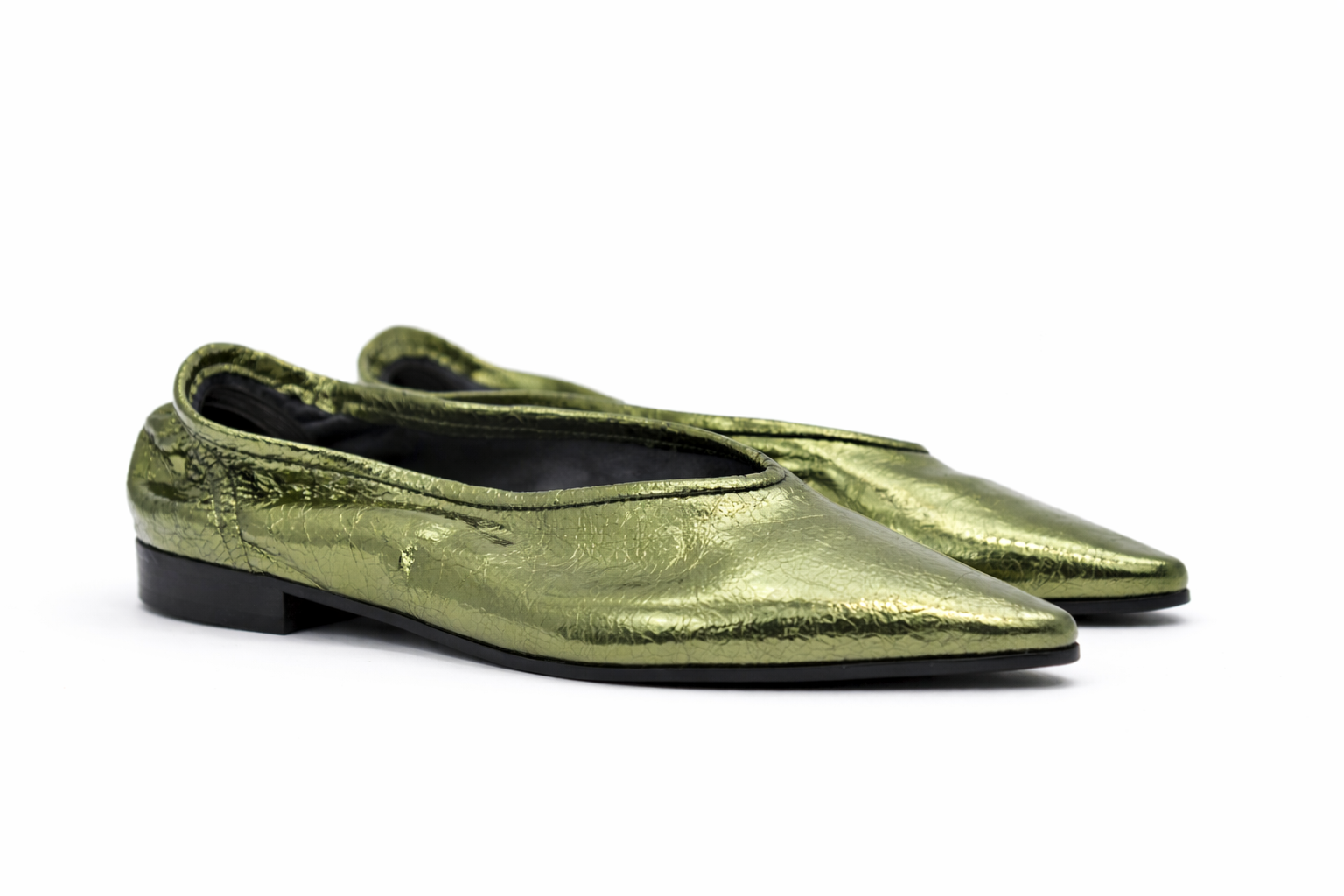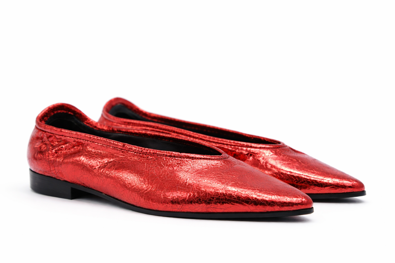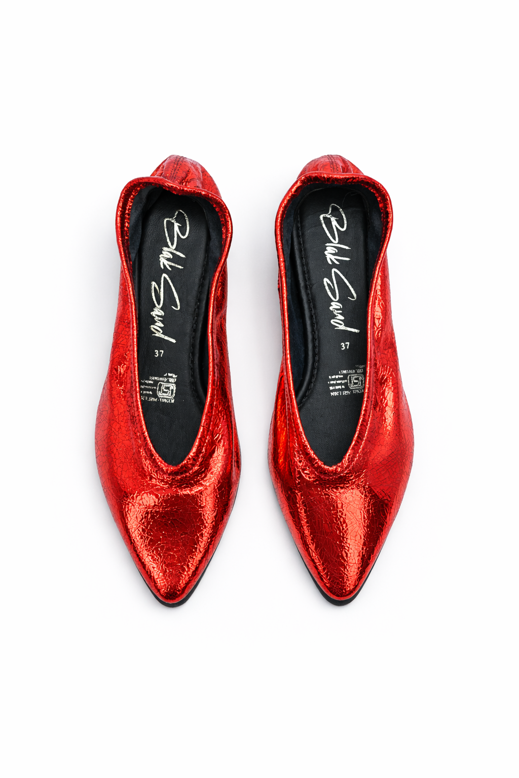 Step into luxury with these exquisite black ballet flats by Blak Sand. Featuring a sophisticated pointed-toe silhouette and a unique finish, Refined Silhouette: A sleek, pointed toe creates an elongated, elegant line perfect for both formal and everyday styling. Premium Interior: Features a smooth, leather-lined cushioned insole for superior comfort and breathability. Artisanal Quality: Finished with tonal elasticated edges for a secure, "glove-like" fit that moves with you.