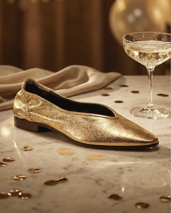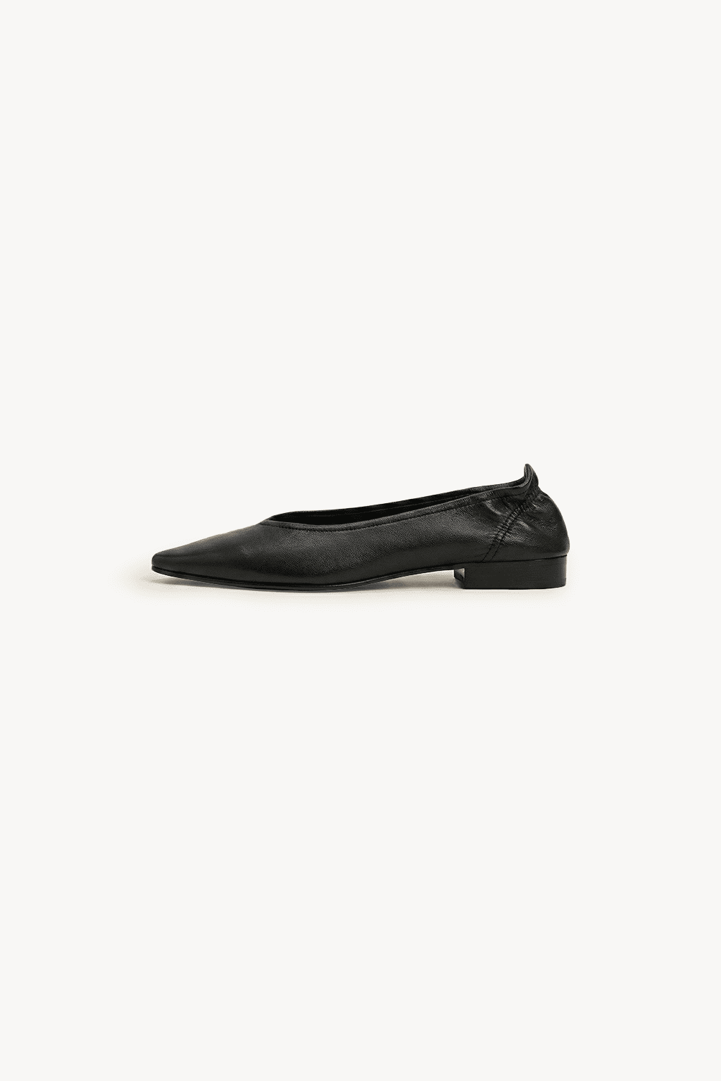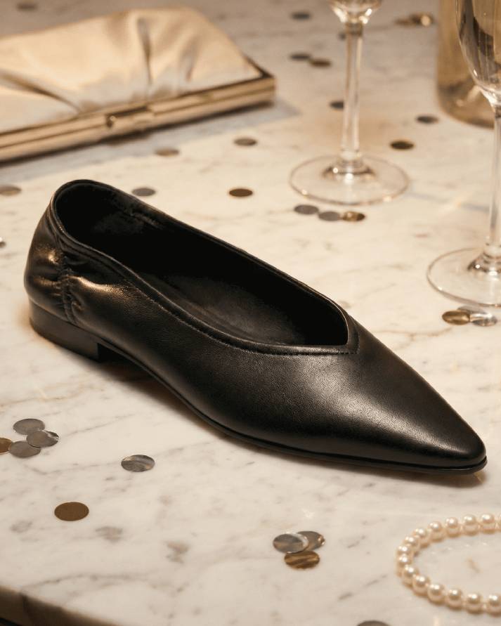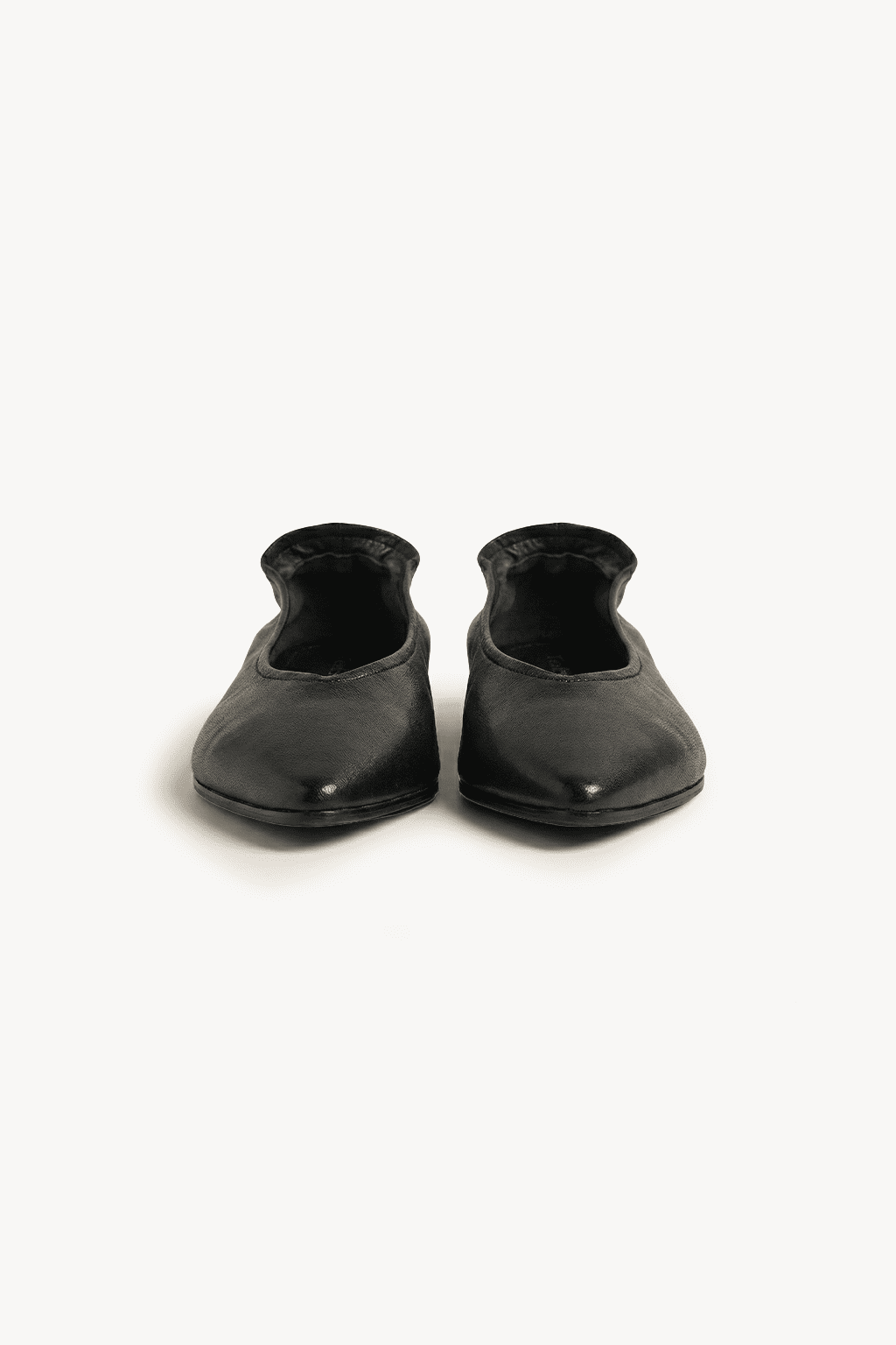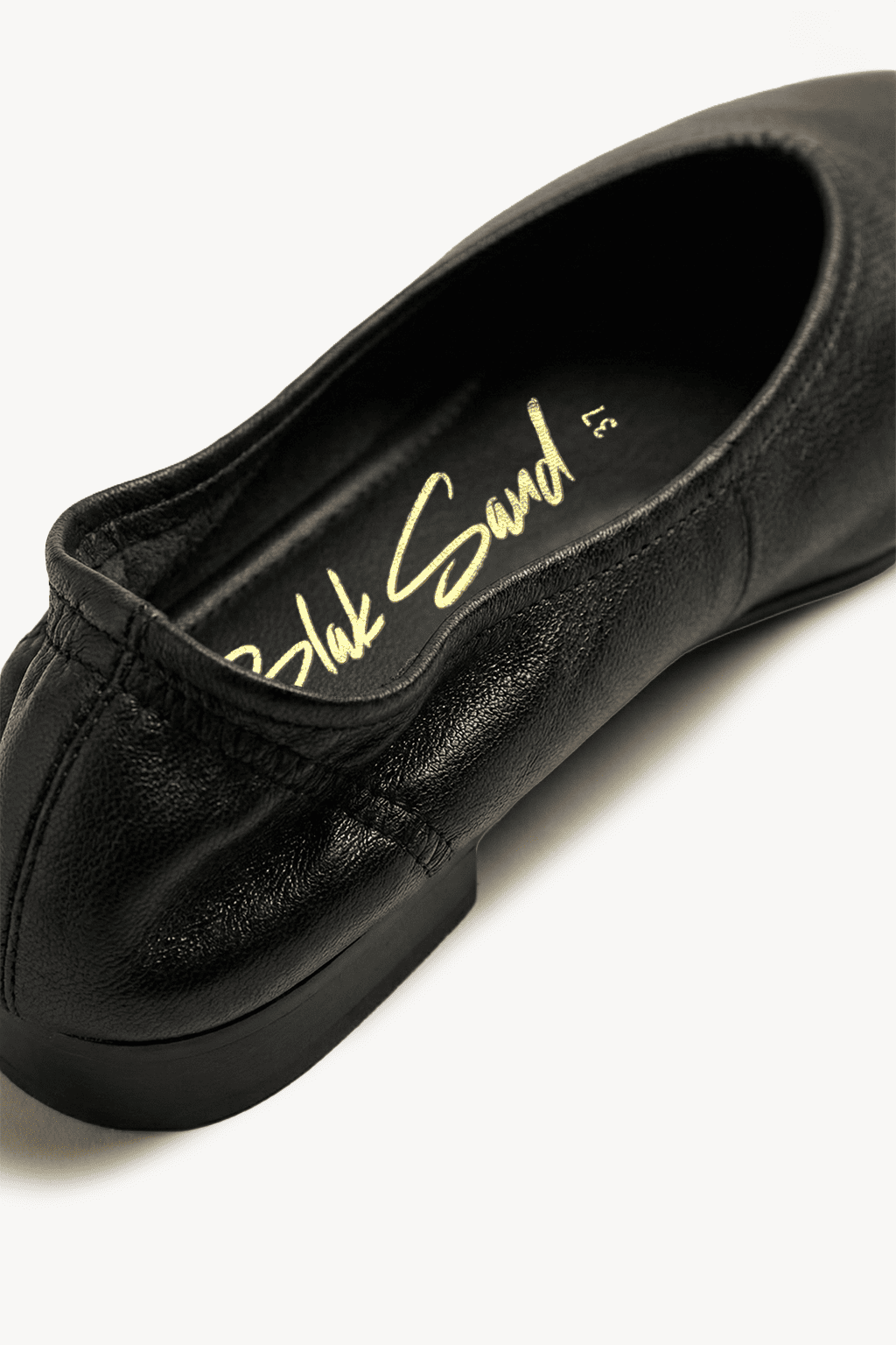 Step into luxury with these exquisite black ballet flats by Blak Sand. Featuring a sophisticated pointed-toe silhouette and a unique finish, Refined Silhouette: A sleek, pointed toe creates an elongated, elegant line perfect for both formal and everyday styling. Premium Interior: Features a smooth, leather-lined cushioned insole for superior comfort and breathability.Artisanal Quality: Finished with tonal elasticated edges for a secure, "glove-like" fit that moves with you.