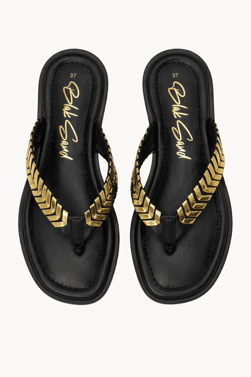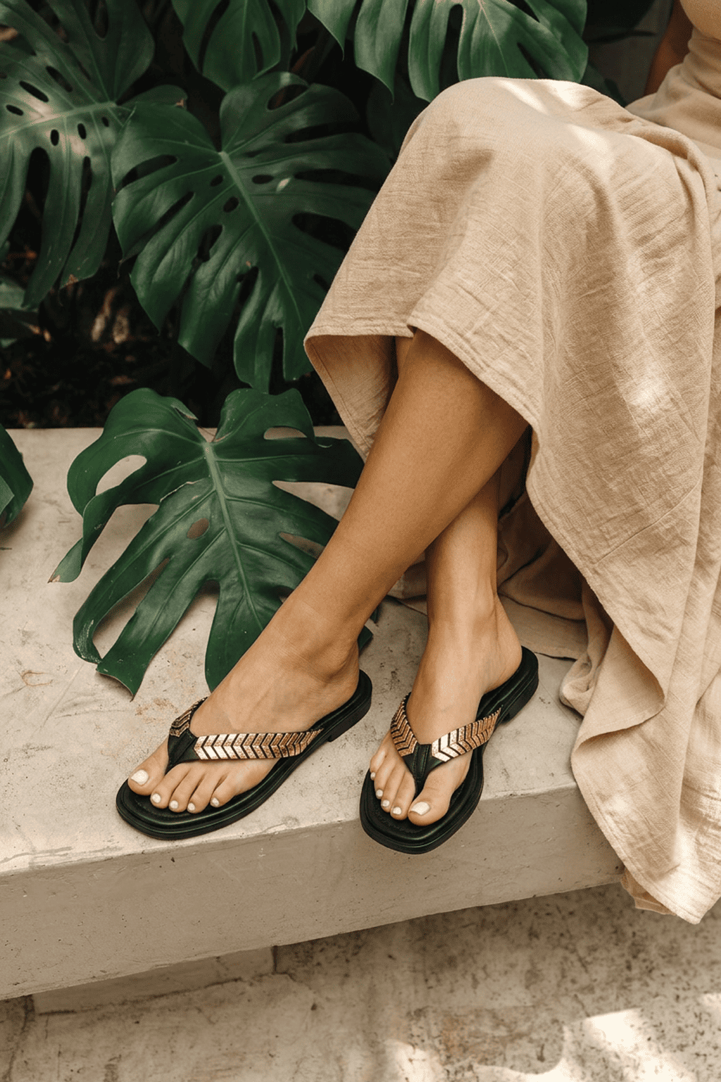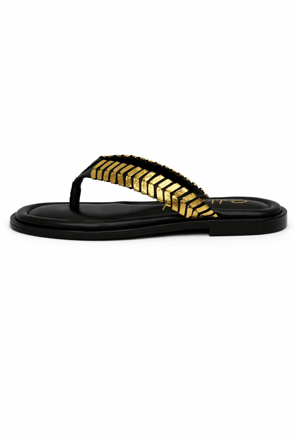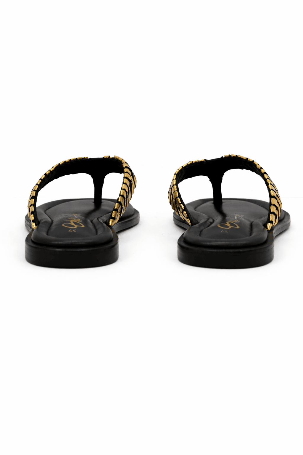 The minimalist thong design is elevated by the intricate weaving detail, giving the sandal a distinctive artisanal character. Set on a sleek, cushioned sole, it delivers both modern sophistication and everyday comfort.