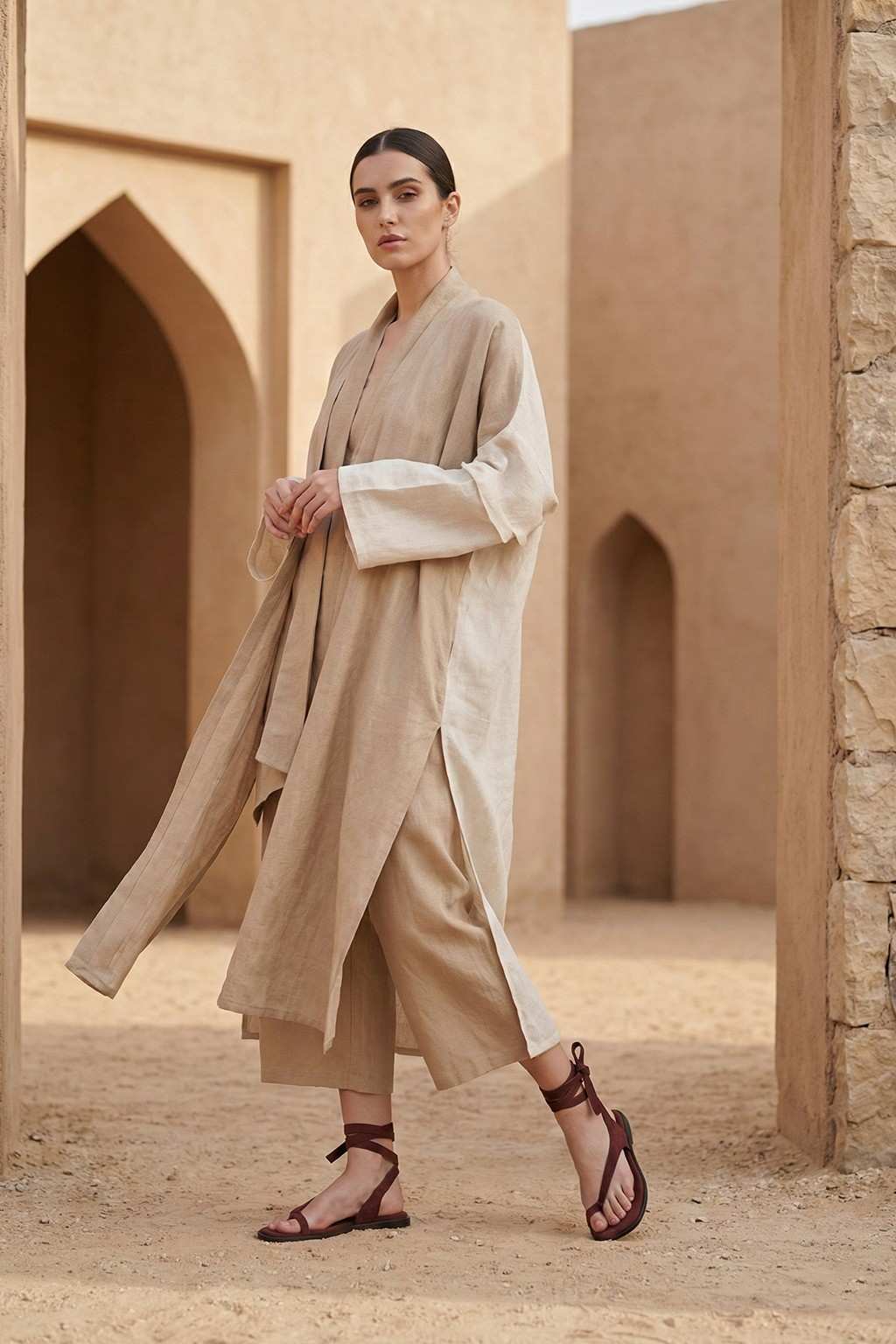 Refined and effortlessly elegant, these ankle-wrap leather sandals deliver a timeless silhouette designed for elevated warm-weather styling. Crafted in rich, supple leather with a sleek thong front and delicate wrap straps, they offer a flattering fit while maintaining a clean, minimalist aesthetic. Finished with a comfortable flat sole for easy all-day wear—perfect for resort escapes, city walks, or understated evening looks.