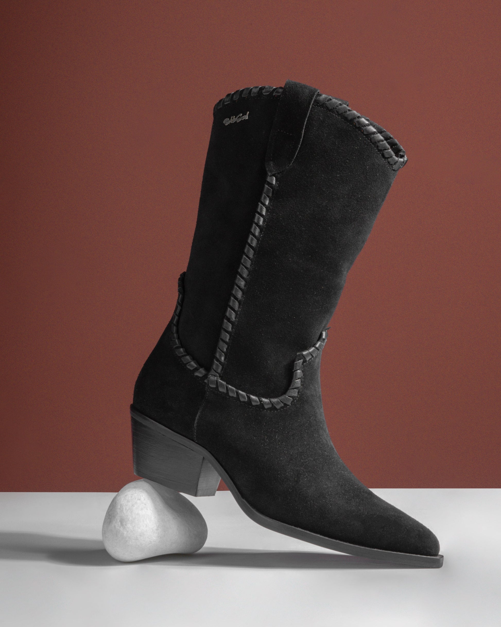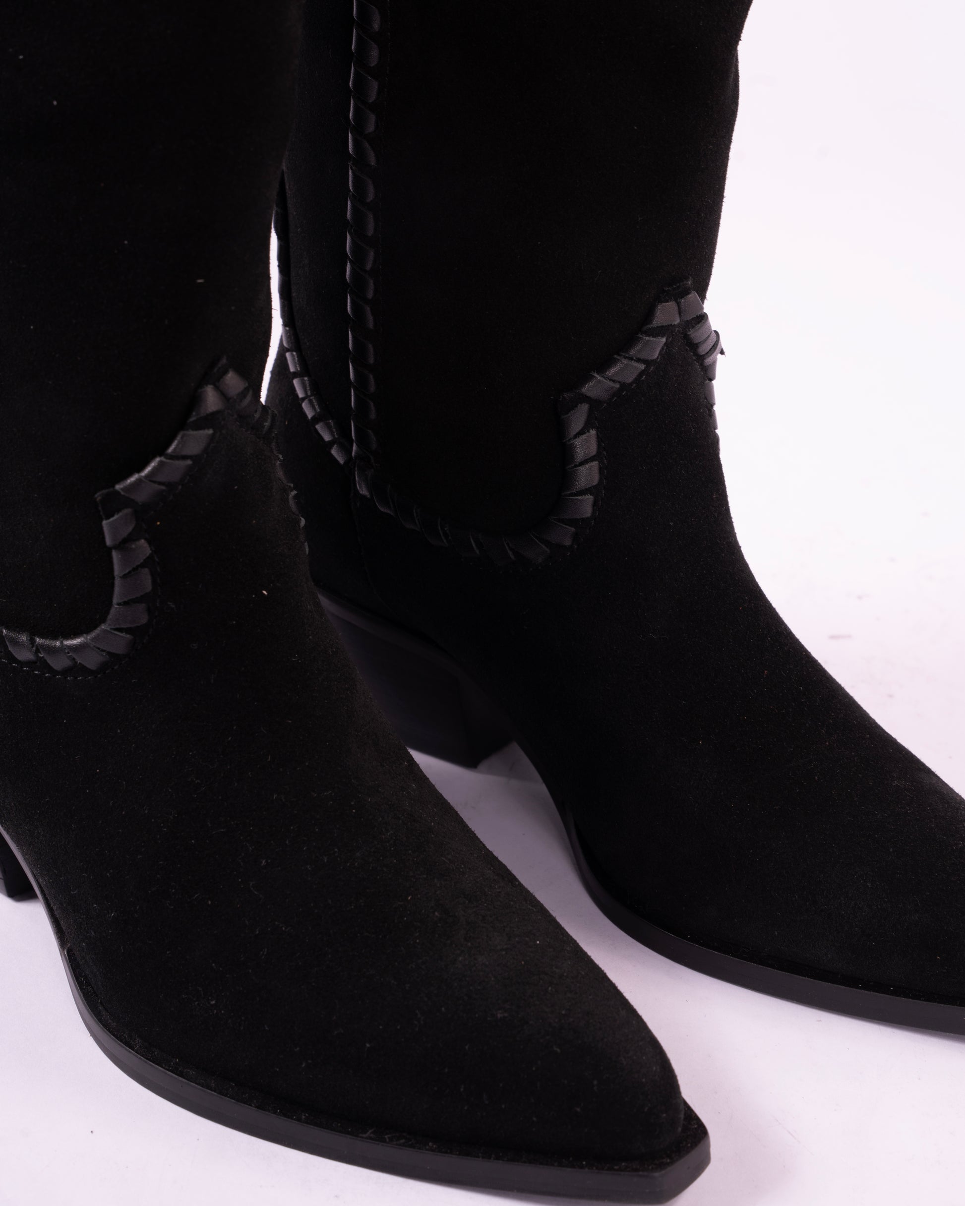 Refined craftsmanship, modern edge. This sleek boot is made from genuine suede leather and features intricate woven details for a bold yet sophisticated look. A cushioned insole and breathable lining ensure all-day comfort, while a slightly pointed toe enhances its sleek silhouette—a perfect blend of style and substance.
