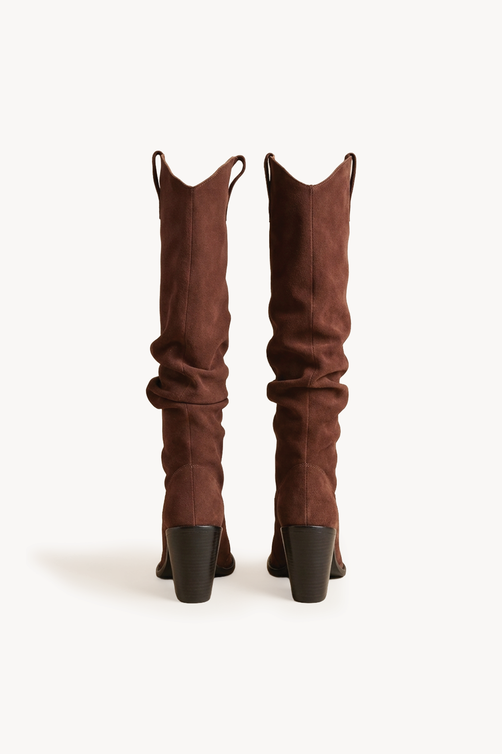 Relaxed elegance, redefined. This premium suede boot features a slouchy shaft for a laid-back yet sophisticated look. A cushioned insole and soft leather lining provide superior comfort, making it perfect for all-day wear. Chic, versatile, and endlessly comfortable.