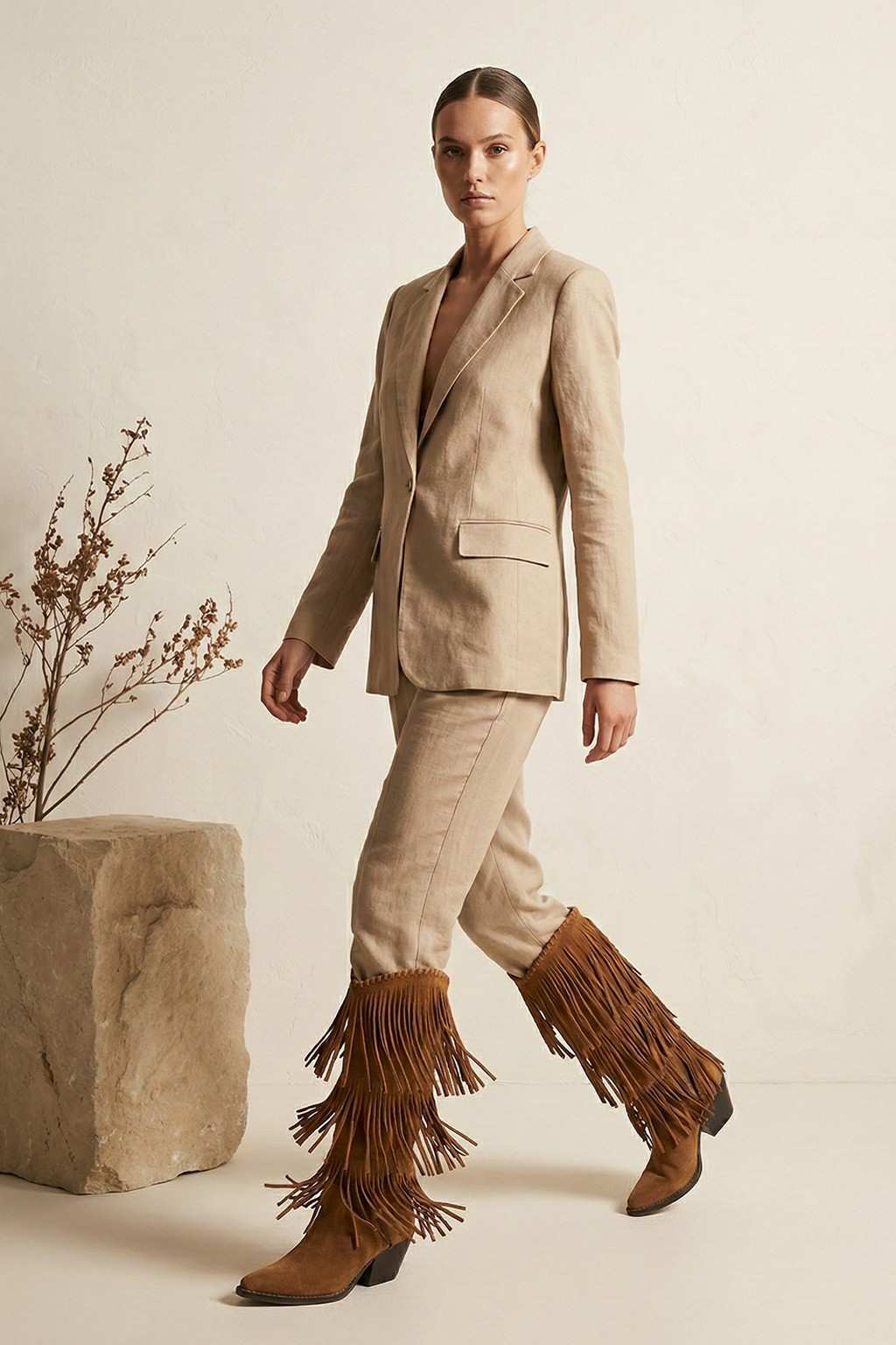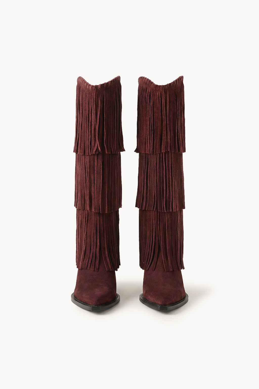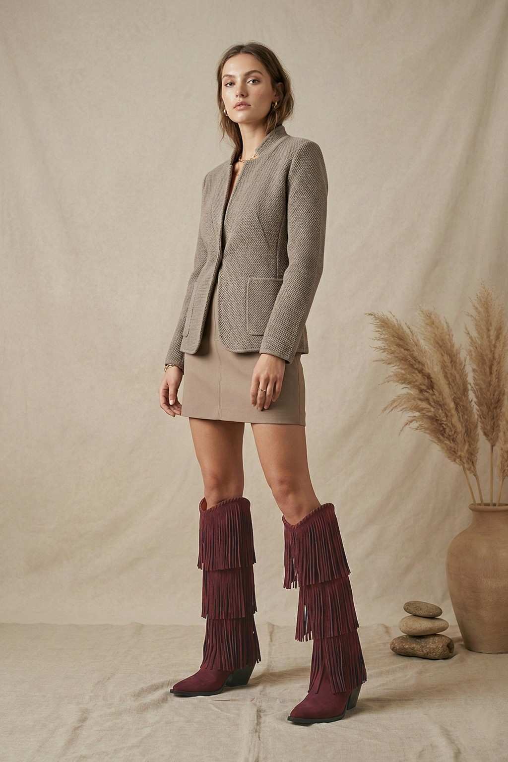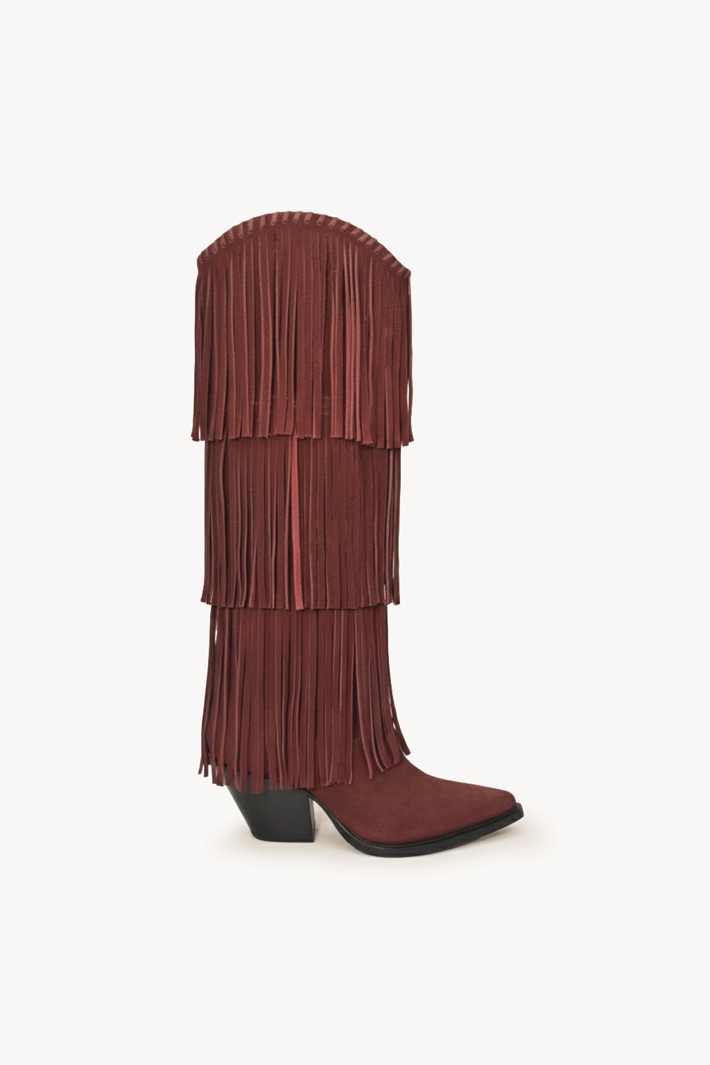 Bold, playful, and timeless, these boots are crafted from premium suede leather. They feature a three-tiered fringe for eye-catching movement and woven detailing for an edgy touch. A cushioned insole, breathable leather lining, and slip-resistant sole ensure all-day comfort and durability. Style meets function, step after step.